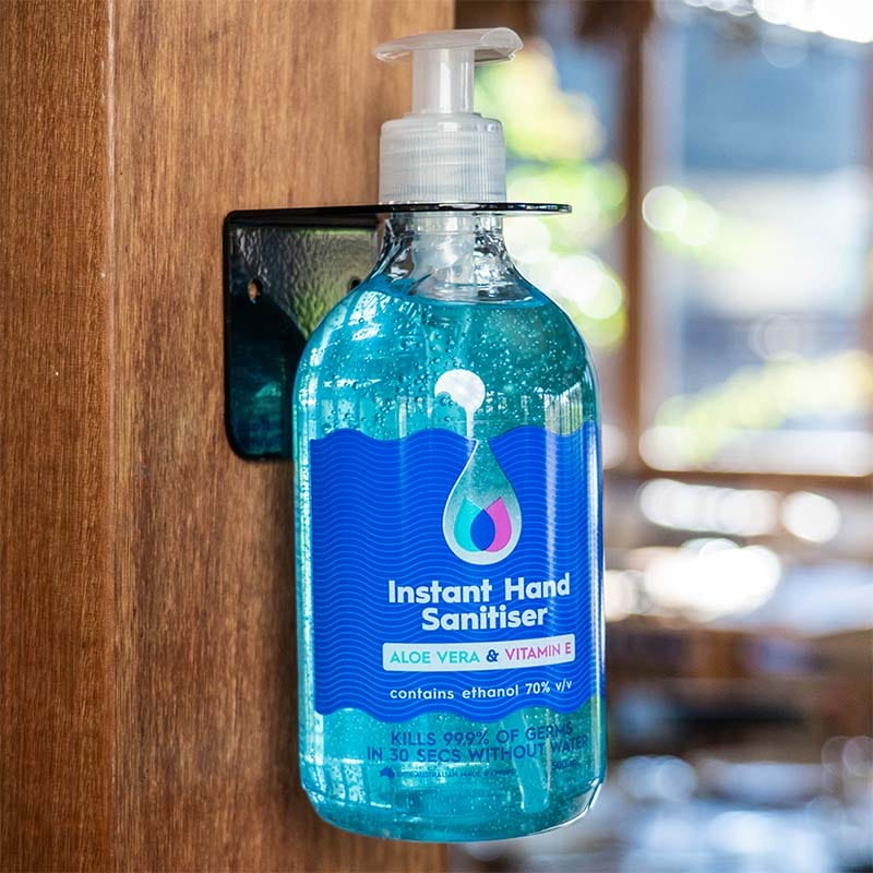 Sleek, sturdy and Australian made. Powder coated heavy duty metal bracket to hold 500ML spray bottles and round boston type bottles (Instant Hand Sanitiser, Hand Wash).